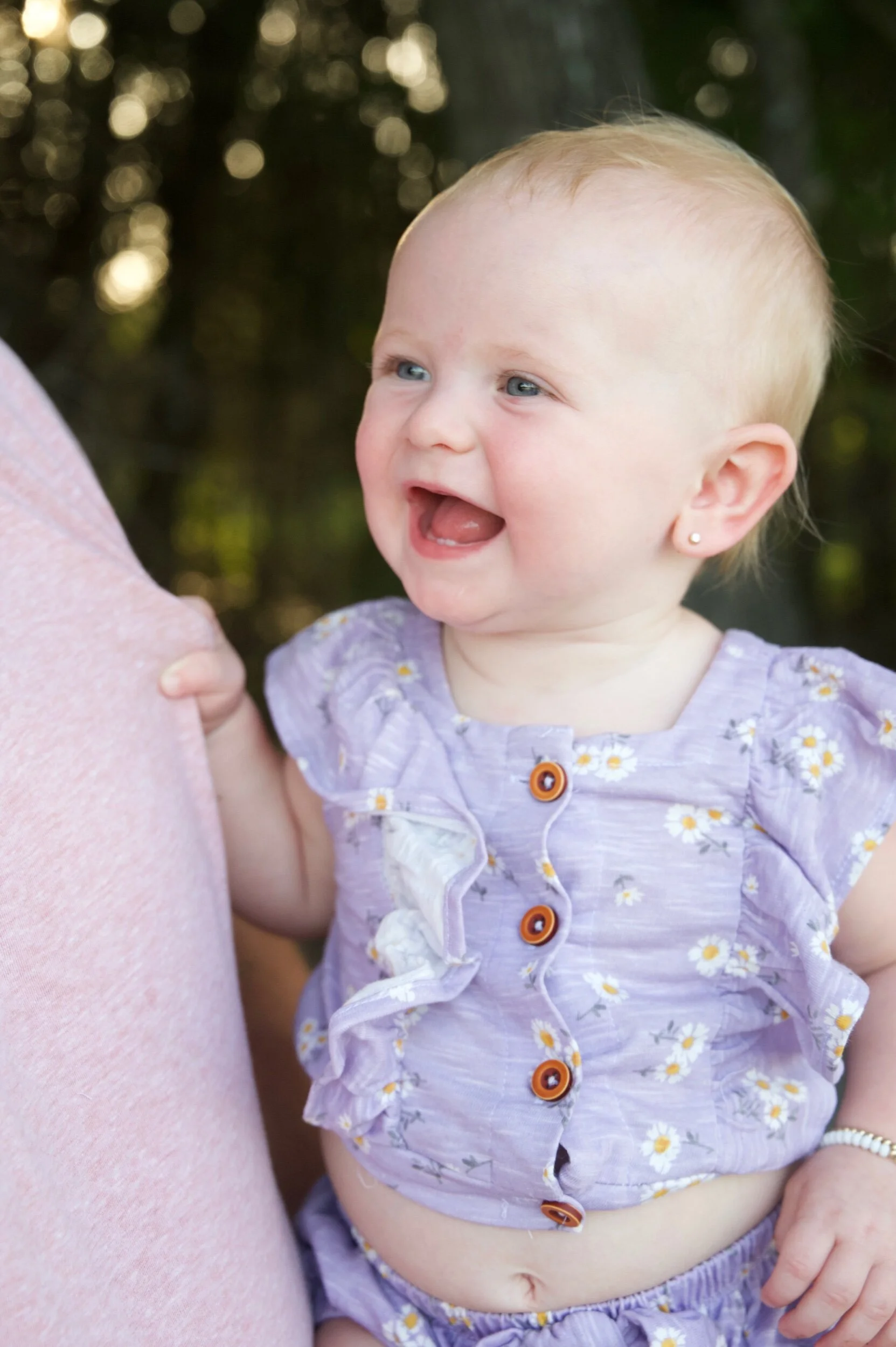 You’ve grown so much in your first year, and we’re embracing every moment! You have four teeth, wave bye-bye, give kisses, growl for fun, and LOVE to dance! You resemble your dada, but you’re mama’s little girl. And we think you may end up having red hair like your Lolli.