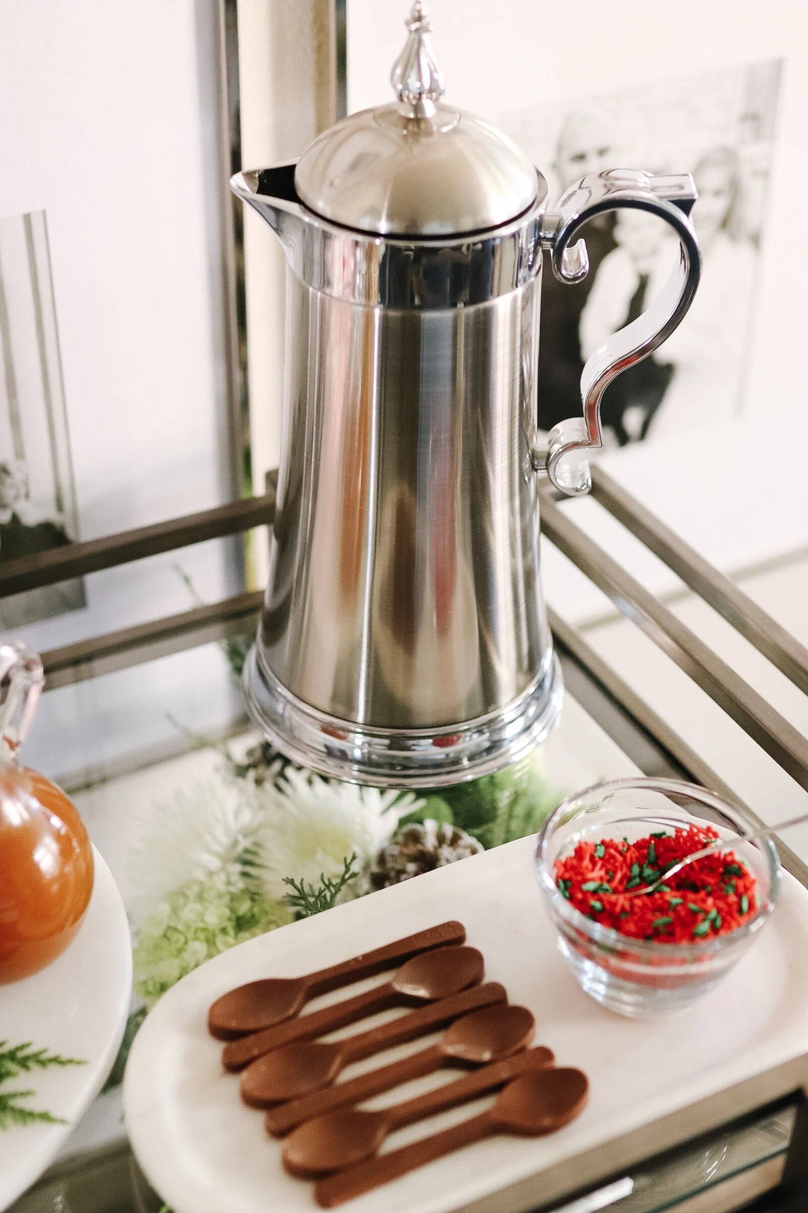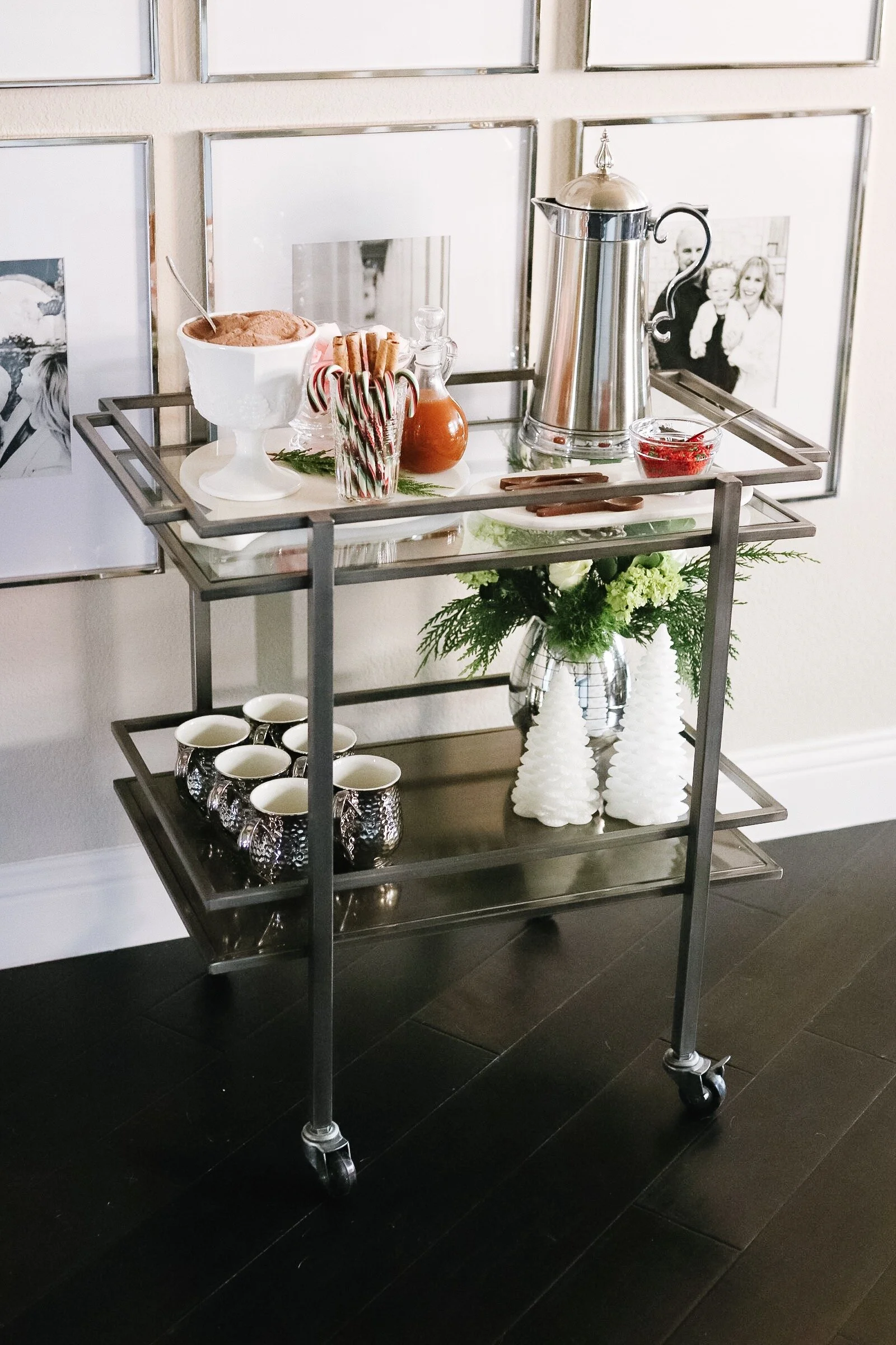 Nothing says cozy on a cold winter day like warm, chocolaty hot cocoa. We were at the zoo a few weeks back when the weather turned frigid, and I couldn’t wait to get my hands on some hot cocoa (literally!). Today I’m sharing my bar cart styled as a hot cocoa bar that’s perfect for an upcoming holiday party or a night in with family.