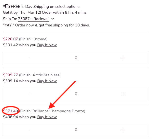 When shopping Joss & Main, check to see if the item you’re purchasing has an Open Box Outlet Price (example below).