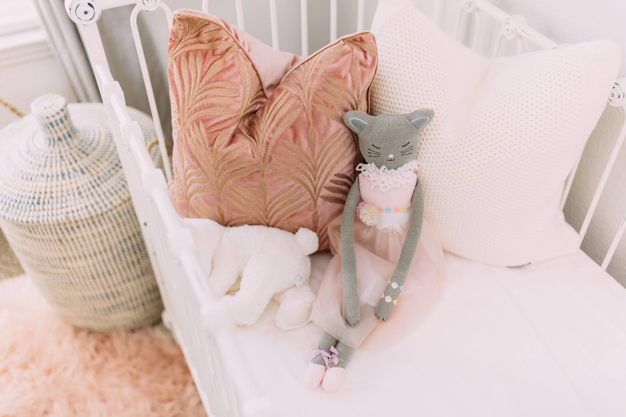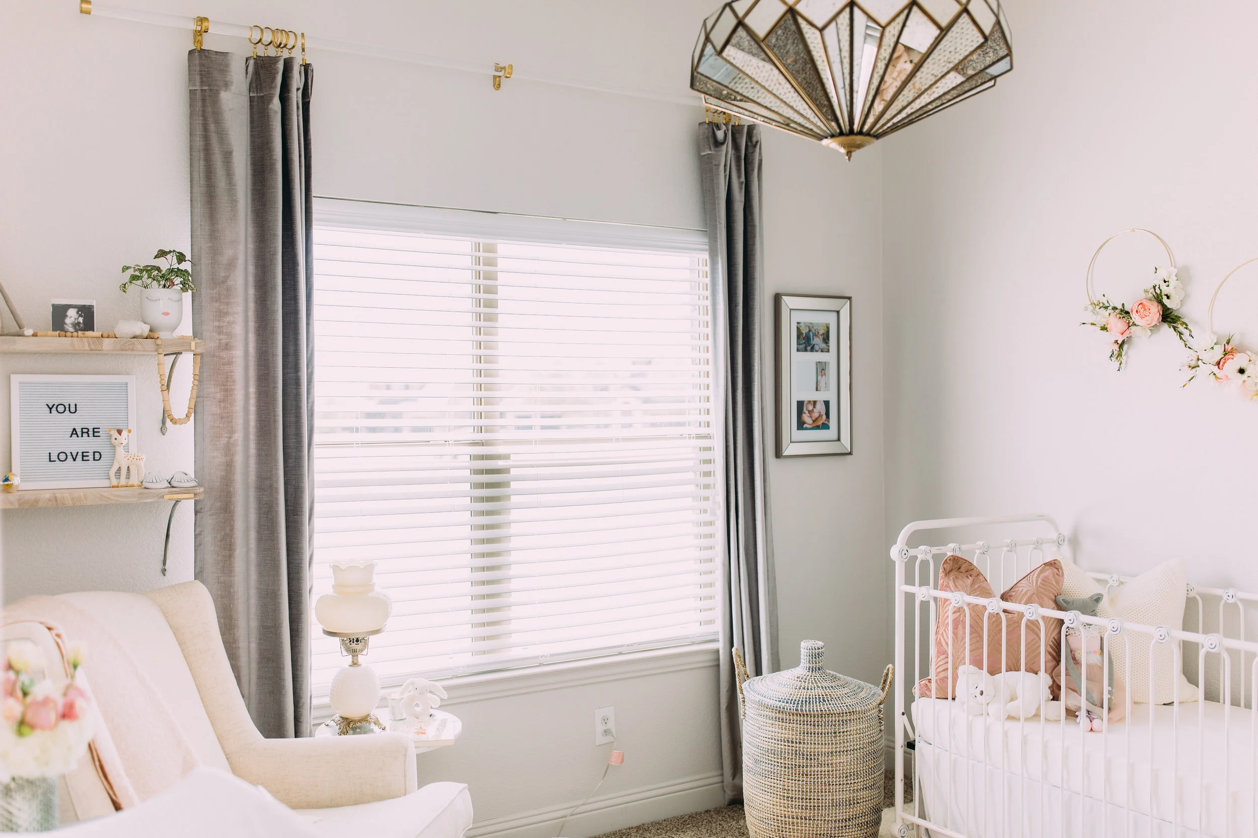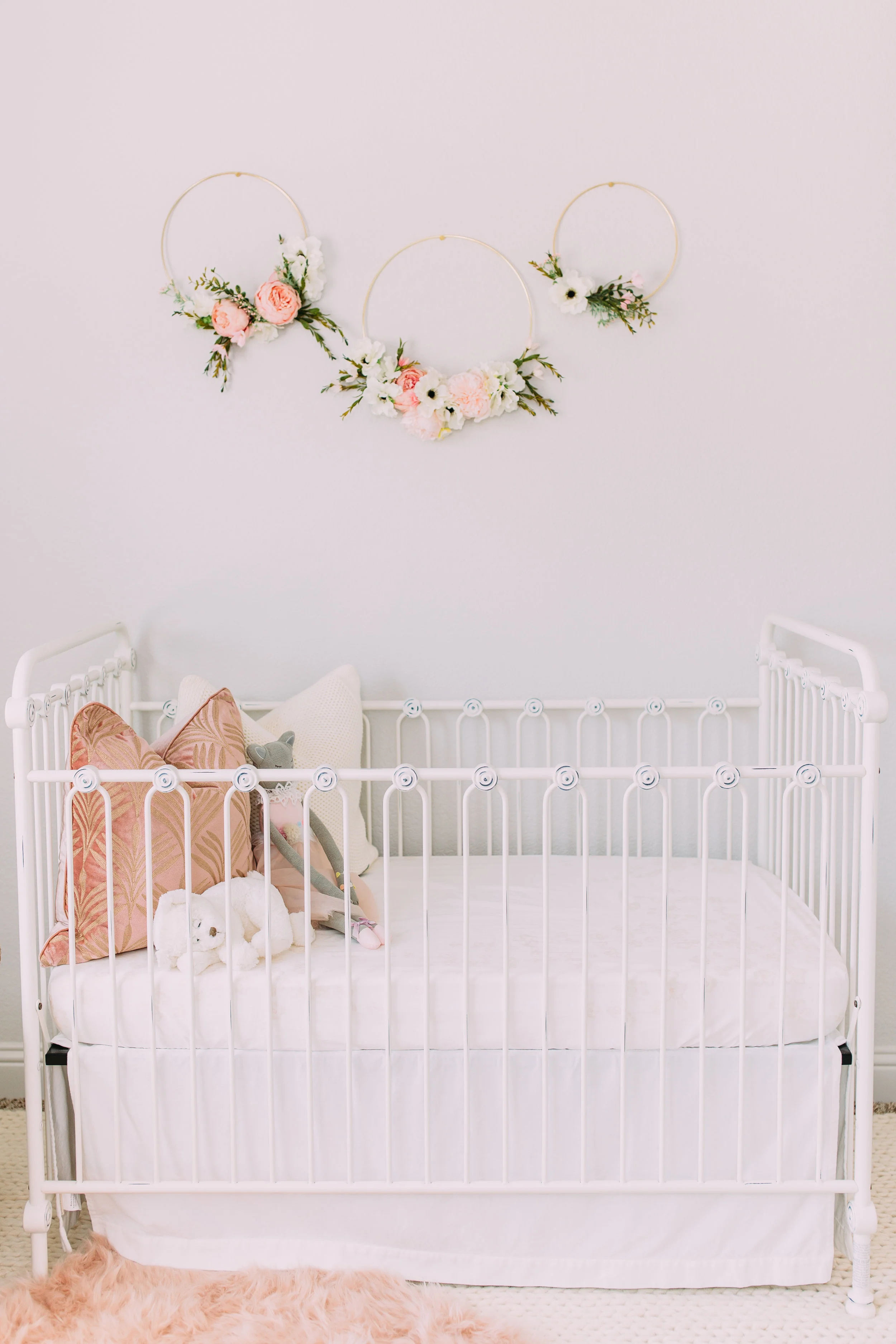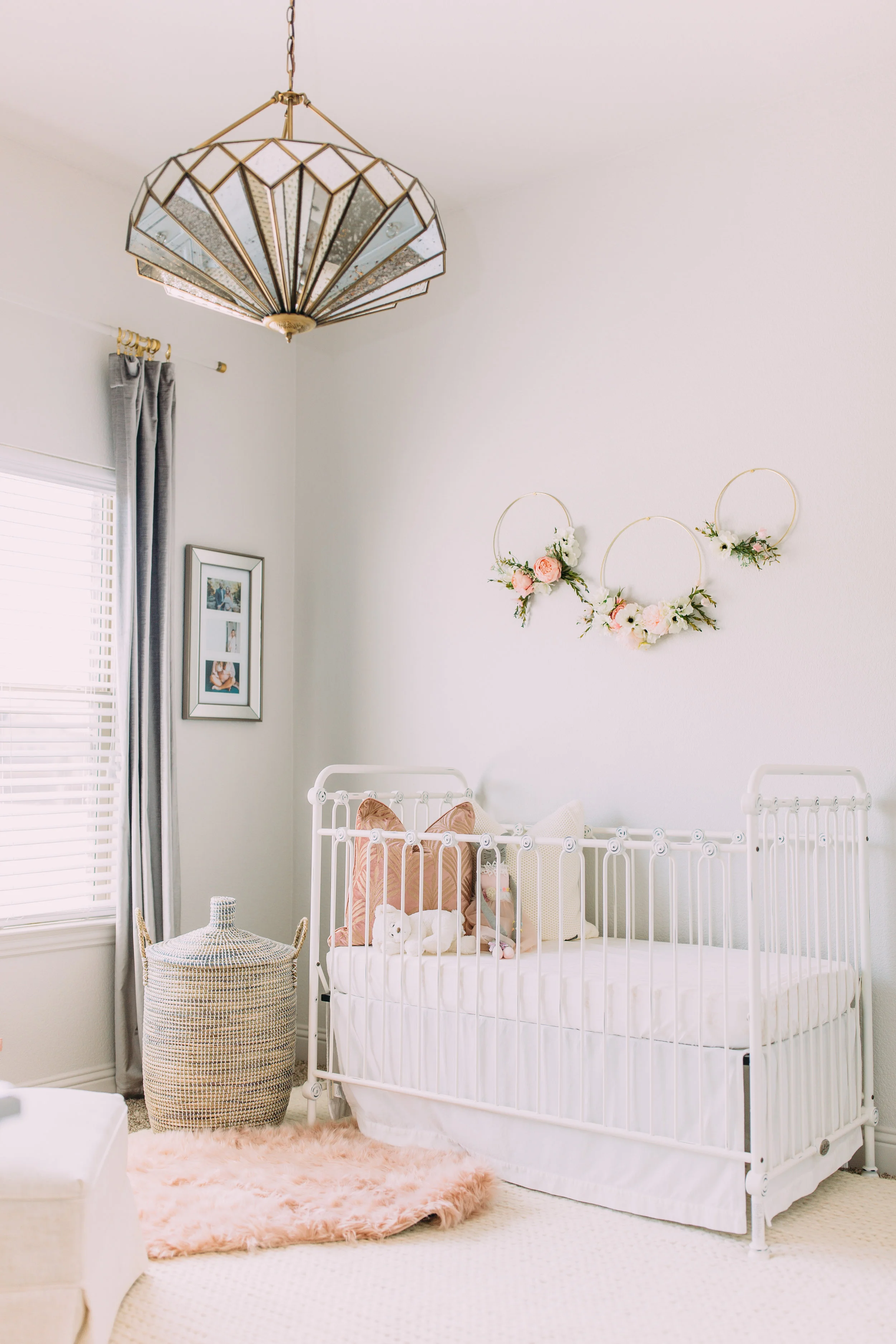 My Dress | Chandelier (no longer avail) | Crib or similar HERE or HERE | Crib Sheet (no longer avail) | Swivel Glider | La Jolla Basket (similar), Crib Skirt (no longer avail) | Kitten Designer Doll (similar) | Blush Bunny or similar HERE | 8X10 Braided Wool Rug | 10”, 12” & 14” Hoop Wreaths (similar) | Velvet Curtains | Acrylic Curtain Rod + Rings (similar) | Accent Table (similar) | Mirror (no longer avail) or similar HERE | Changing Pad | Changing Pad Cover | Dresser | Drawer Organizers (similar) | Pink Romper | Diaper Pail | Jellycat Plush Rattle (similar) | Fawn Teether | 10”x10”Letter Board (similar) | 4”x4” Acrylic Block Frame | 18” Wall Shelves (similar) + Brackets | Rope Bins | Velvet Baby Hangers or similar HERE | Baby Closet Dividers | Hamper (similar)