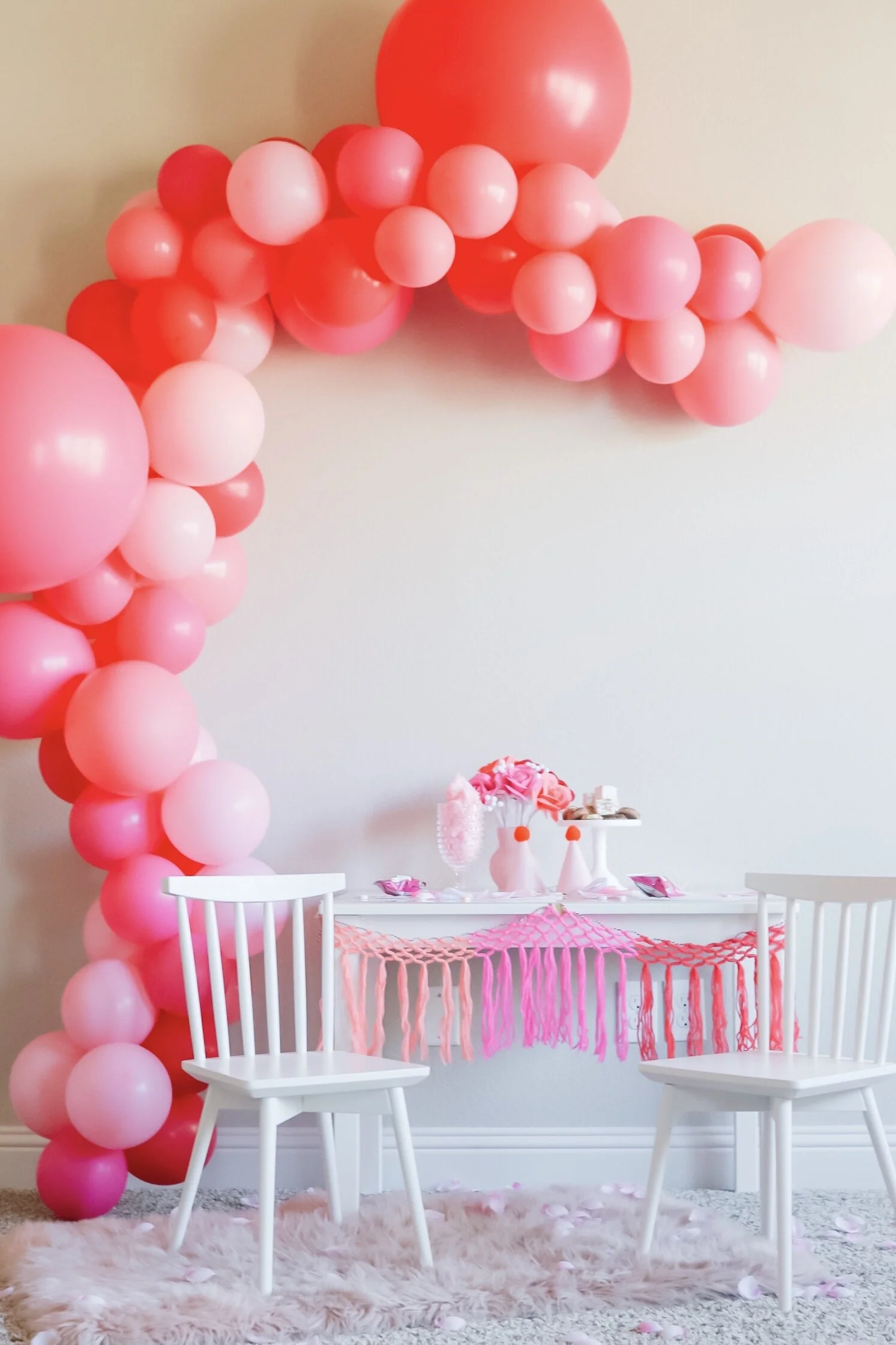 The confetti marshmallows are my friend’s marshmallow cafe, XO Marshmallow, based in Chicago, but available nationally with their online shop. And the fabulous DIY balloon garland kit from Lushra. Balloon garlands can look intimidating, but this DIY kit makes it so easy!